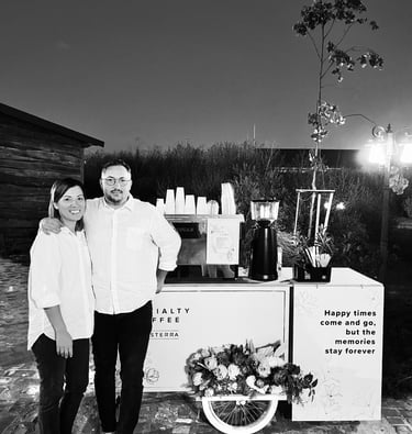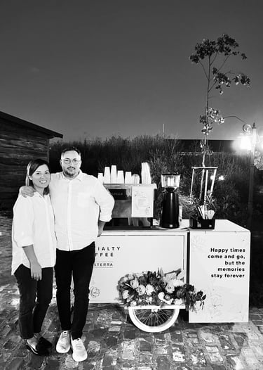 Mobile Coffee Cart is a labor of love, brought to life by our founders, Laura and David, who work hand in hand, combining their passion and dedication to bring their shared vision to life. Their deep love for coffee and their adventurous spirit have taken them on a journey across the globe, discovering the rich tapestry of coffee cultures and flavors. These experiences infuse our brand with a unique perspective and a dedication to excellence.